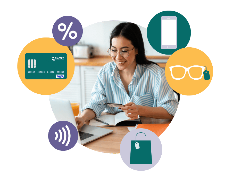1Dividends are subject to Member Rewards Program Levels. For details refer to the deposit account rate sheet at www.chaffey.com 2Free checks are limited to one box per year for all members. Members age 55+ qualify for FREE senior checks. 3Lost/damaged debit cards will be replaced with no fee for up to 5 times for the life of the account. 4Benefits are available to personal checking account holder(s), and their joint account holders subject to the terms and conditions for the applicable Benefits. Some Benefits require authentication, registration and/or activation. Benefits are not available to a “signer” on the account who is not an account holder or to businesses, clubs, trusts organizations and/or churches and their members, or schools and their employees/students. 5Registration/activation required. 6You will have access to your credit report and score provided your information has been verified by the CRA. Credit score is a VantageScore 3.0 based on Experian data. Third parties may use a different type of credit score to assess your creditworthiness. 7Special Program Notes: The descriptions herein are summaries only and do not include all terms, conditions and exclusions of the benefits described. Please refer to the actual Guide to Benefit and/or insurance documents for complete details of coverage and exclusions. Coverage is provided through the company named in the Guide to Benefit or on the insurance document. Guide to Benefit and insurance documents can be found online at ChaffeyPlus.ClubChecking.com. Insurance products are not insured by the NCUA or any federal government agency, not a deposit of or guaranteed by the credit union or any credit union affiliate. 8Once this benefit has been activated and you have requested your first credit score, you may request a new credit score each month to be plotted on your Credit Score Tracker graph. Monthly email notifications will be sent to let you know when your new score is available.